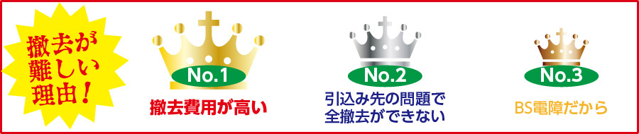 撤去費が高い、一部残置、BS電障、と諦めていませんか?